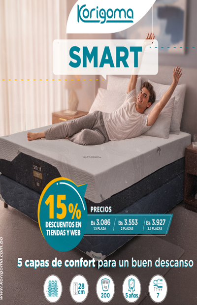 - 15 % descuentoBs. 3.086 – Bs. 4.582Koke Smart, El colchón está diseñado para ofrecer un descanso superior mediante la integración de cinco capas de materiales de alta calidad. Este diseño en capas asegura un equilibrio entre soporte y confort, adaptándose a diversas posiciones de descanso y necesidades de los usuarios.