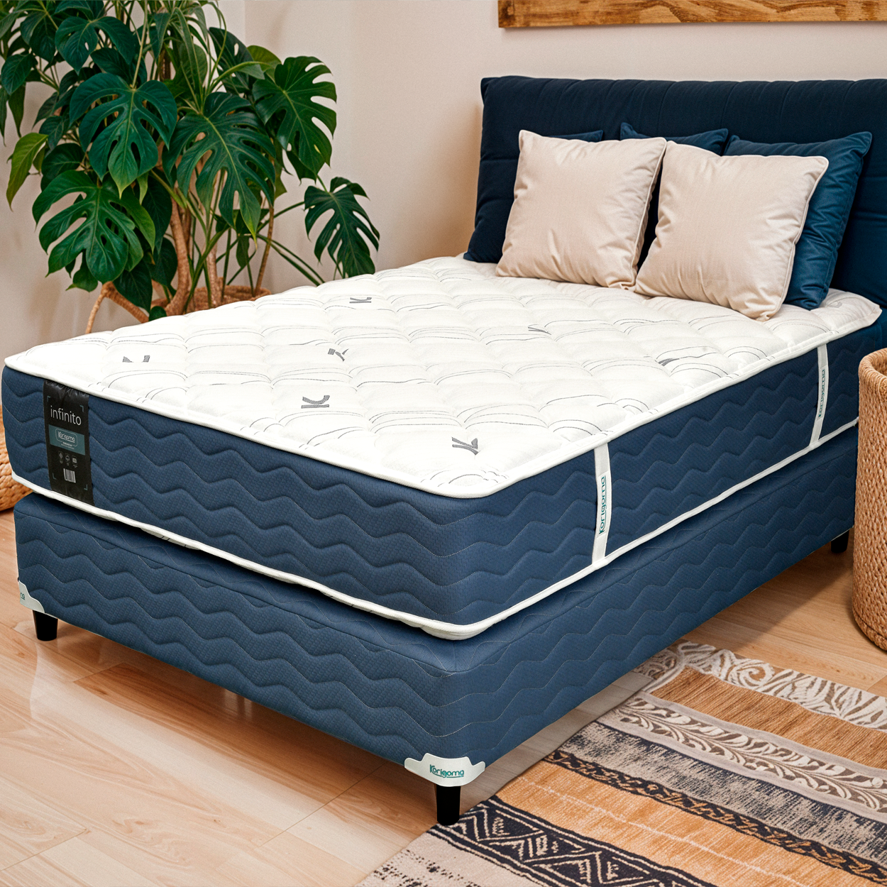 Infinito, Colchón de Espuma de Alta Densidad (30 kg/m³) garantiza un soporte firme y adecuado para tu cuerpo, permitiendo una correcta alineación de la columna vertebral y evitando dolores y molestias al despertar.