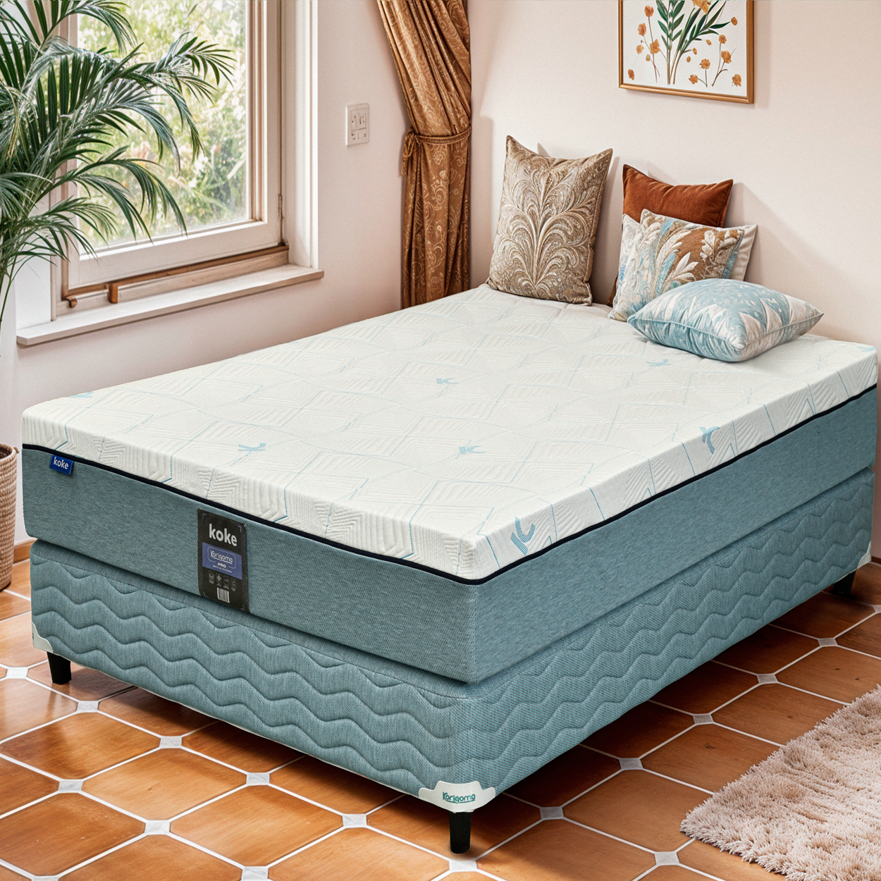 Koke, El colchón está diseñado para proporcionar un descanso óptimo mediante la integración de cuatro capas de espumas de alta calidad. Este diseño en capas asegura un equilibrio entre soporte y confort, adaptándose a diversas posiciones de descanso y necesidades de los usuarios.